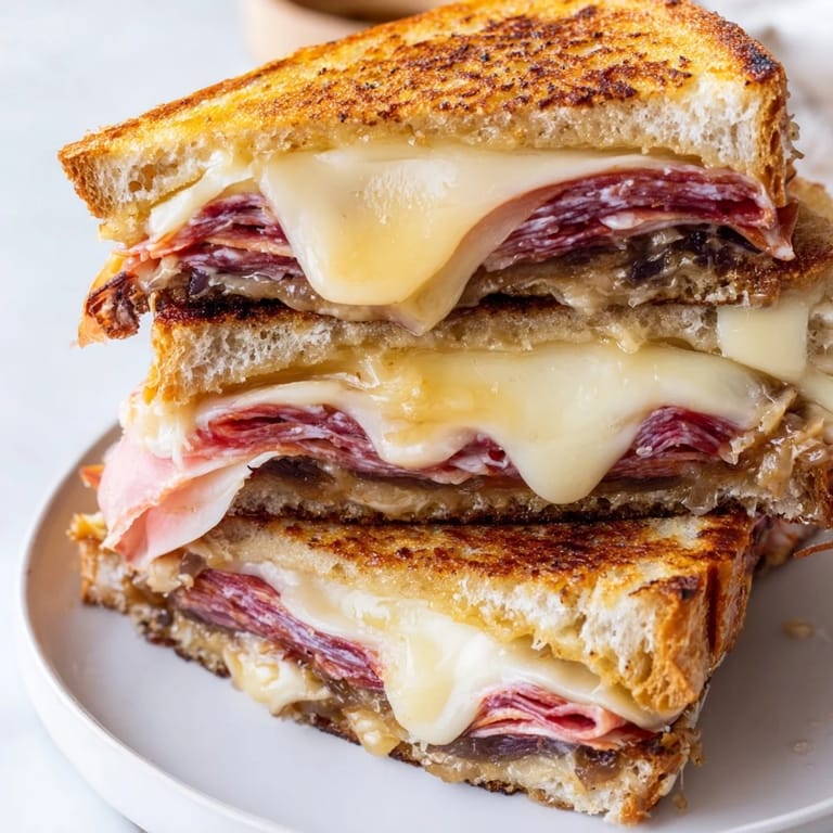 I used to think of cured meats as a charcuterie board ingredient, something you'd nibble on with wine at someone's house. Then I realized they're just as at home in a hot sandwich, where they warm slightly but stay intact, adding layers of flavor and texture. The saltiness keeps the richness of the cheese from feeling heavy, and the variety keeps your palate interested through every bite.