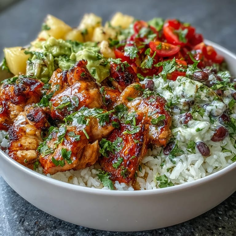Save Imagine a bowl that brings together the best of tropical flavors and satisfying comfort food—tender, spiced chicken mingling with sweet pineapple salsa, all resting on a bed of creamy coconut rice. These Chicken Pineapple Taco Bowls are a vibrant celebration of fusion cuisine, combining Mexican-inspired spices with island-fresh ingredients. Whether you're looking for a quick weeknight dinner or a colorful meal to share with friends, this recipe delivers bold flavors and eye-catching presentation in just 45 minutes.