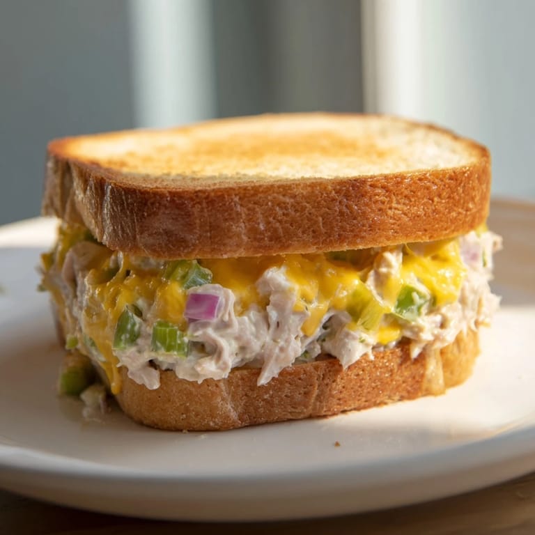Save A golden, crispy sandwich filled with creamy tuna salad and gooey melted cheese β the perfect quick and satisfying snack.