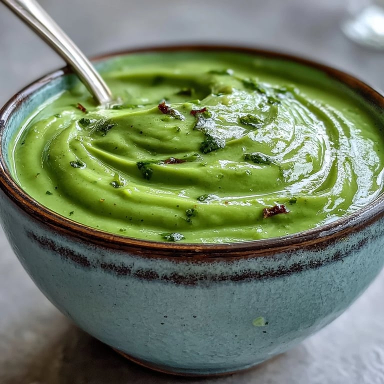 Save I stumbled across this courgette, pea and pesto soup recipe during a rainy spring afternoon when my garden's zucchini plants had suddenly produced more than I knew what to do with. The vibrant green color caught me off guard – I wasn't expecting something so simple to look like spring in a bowl. Steam rising from the pot filled my kitchen with the gentle aroma of basil and sweet peas, immediately brightening my mood despite the weather outside.