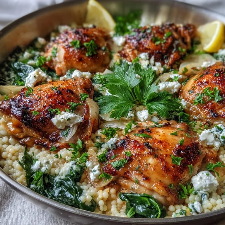 Save My neighbor brought this dish to a potluck on a Thursday evening, and I watched it disappear faster than anything else on the table. When she finally handed over the recipe scrawled on the back of an envelope, I understood why: one pan, Mediterranean warmth, and chicken so tender it practically melted into creamy couscous studded with tangy feta. The first time I made it, my kitchen smelled like lemon and oregano for days, and I kept opening the oven just to peek at those golden chicken thighs nestled into the sauce.