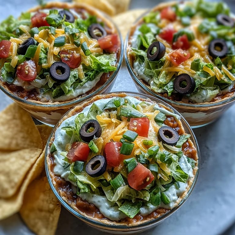 Save My sister texted me a photo of these taco dip cups from a party she'd attended, and I was instantly hooked by how they looked in those clear glasses—like edible layers of a sunset. I made them that same weekend for a casual gathering, and watching my friends dive into individual cups instead of crowding around a single bowl felt like discovering a small genius hack. The beauty of them is that everyone gets their own perfect ratio of creamy, fresh, and cheesy in every spoonful, no arguing over whose portion has the most toppings.