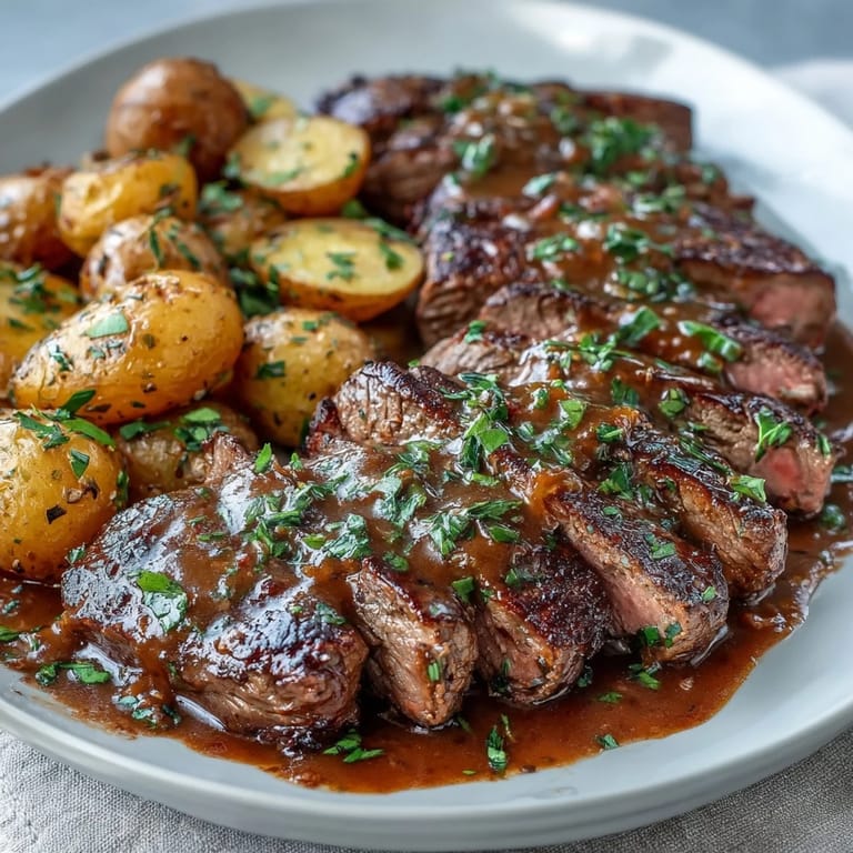 Save This recipe balances the hearty flavors of sirloin with the comforting texture of roasted potatoes. The garlic butter sauce elevates the dish, making it both a crowd-pleaser and a welcome centerpiece on any table.