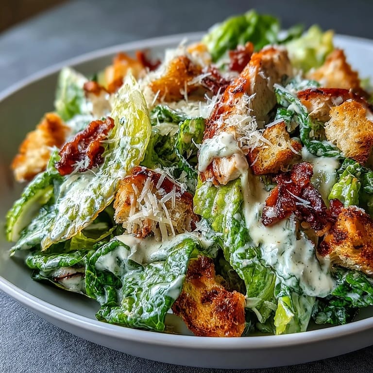 I made this for a potluck where everyone brought something store-bought, and watching people pause mid-bite to ask for the recipe made me feel like I'd cracked some sort of code. The croutons were golden, the lettuce stayed crisp because I'd patted it bone-dry the night before, and the dressing had this subtle anchovy undertone that nobody could quite place. It became the dish I'm now asked to bring to every gathering.
