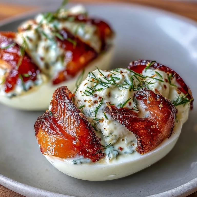 Save The first whiff of smoky, briny salmon mingling with creamy eggs always surprises me. I remember tinkering in the kitchen during a rainy morning, hunting for a brunch twist that felt bold yet inviting—something that could outshine standard fare. Smoked salmon deviled eggs emerged from that moment, and the kitchen felt suddenly brighter. There's a satisfaction in how everything bagel seasoning crackles under your fingers as you sprinkle it on, making each half a tiny celebration. This appetizer has become a low-effort crowd-pleaser, ideal for spontaneous brunches or when you're feeling adventurous.