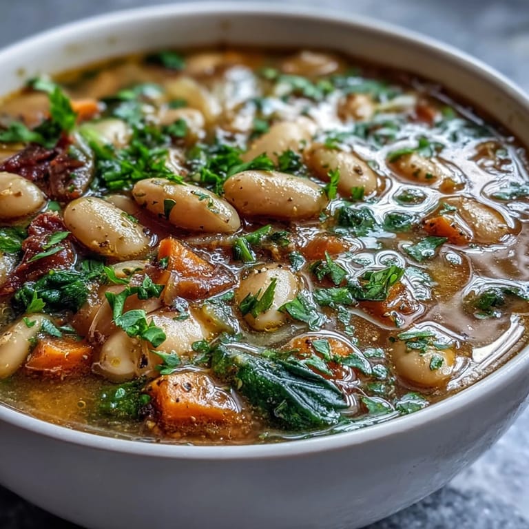 Save There's something about a bowl of Tuscan white bean soup that stops time in the kitchen. My neighbor Maria once brought this over on a gray February afternoon, and the moment that garlicky aroma hit my nose, I understood why she'd been raving about it for weeks. The soup was impossibly simple yet tasted like it had been simmering for hours, and the crispy garlic bread became the star of the meal in ways I hadn't expected. Since then, I've made it countless times, each batch teaching me something new about coaxing flavor from humble ingredients.