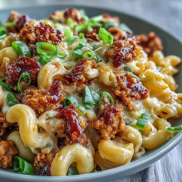 Save My roommate brought home a jar of gochujang one Tuesday, and I watched her make this Korean-style turkey mac and cheese while standing at our tiny kitchen counter. The smell of garlic and ginger hitting the sesame oil, then that deep red paste swirling into ground turkey—it felt like two completely different cooking worlds colliding in the best way. I couldn't resist asking for a taste, and by the time she plated it with those bright green scallions scattered on top, I knew I had to learn how to make it myself.