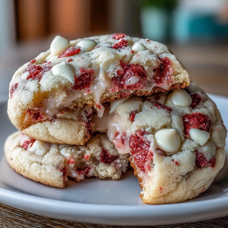 Save My friend texted me a photo of strawberries at the farmer's market with just a heart emoji, and somehow I knew exactly what she wanted: cookies that tasted like Valentine's Day felt. I'd been experimenting with freeze-dried strawberries all week, frustrated that fresh ones made everything soggy, when it clicked—crush them up, let them stay chewy inside, and pair them with white chocolate that melts like a whisper. That afternoon, my kitchen smelled like strawberry fields mixed with butter and sugar, and I realized I'd stumbled onto something that made people smile before they even took a bite.
