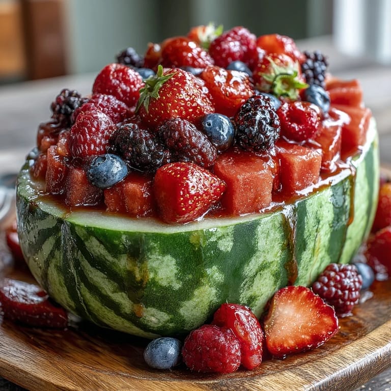 Save Last summer, my neighbor showed up at my door with a watermelon so massive I could barely carry it, insisting I do something spectacular with it for the weekend gathering we'd both promised to host. I stood in my kitchen, staring at this enormous fruit, when it hit me—why not carve it into something people would actually remember? The moment I scooped out that first hollow and filled it with jewel-toned berries, I realized I'd stumbled onto something that felt less like cooking and more like creating edible art.